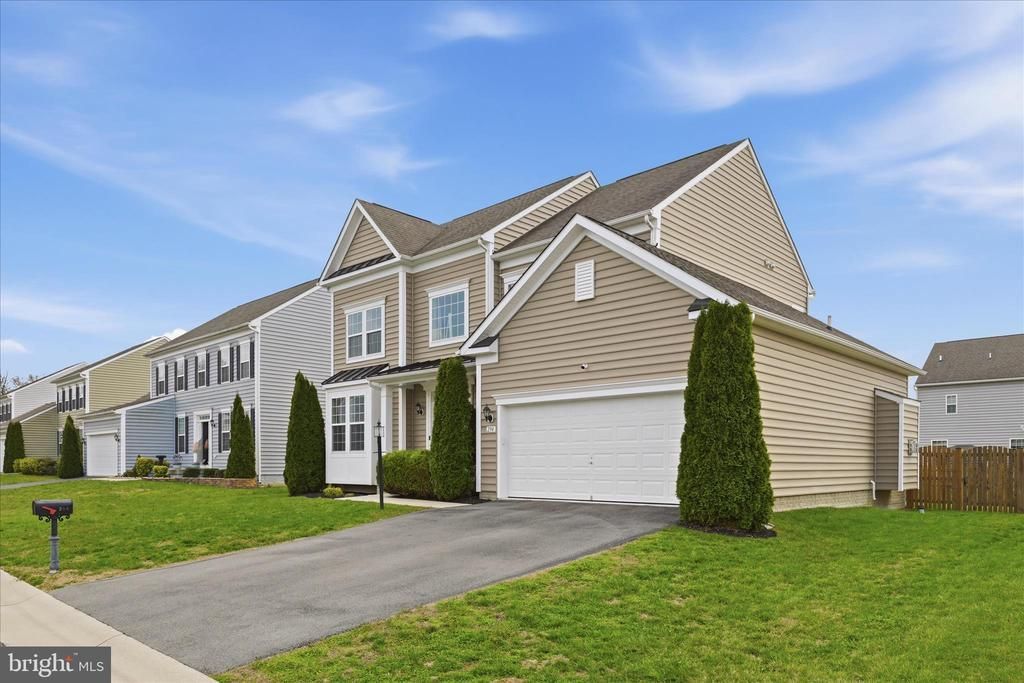Welcome to 294 Ticonderoga Drive! This beautifully maintained Colonial home offering over 3,600 finished square feet of finished living space, featuring a landscaped front yard, charming bay window, and inviting covered porch with a stylish metal roof. A spacious two-car garage and paved driveway provide ample parking and everyday convenience and guest. Step inside to discover elegant details throughout, including dramatic wide crown molding in the living and dining rooms, rich wood flooring across most of the main level, and turned stairs leading to the second floor. Abundant windows fill the home with natural light, creating a warm and welcoming atmosphere. The spacious family room is perfect for gathering, complete with a cozy gas fireplace. The gourmet kitchen is a chef’s dream, showcasing 42” white cabinetry, granite countertops, a center island, and stainless steel appliances—including a double wall oven and gas cooktop. Just off the kitchen, the bright morning room with a cathedral ceiling offers the perfect space for casual dining or relaxing with your morning coffee, with direct access to the large, privacy-fenced backyard. Upstairs, the primary suite is a true retreat, featuring a tray ceiling, walk-in closet, and a luxurious en-suite bath with dual sinks, granite counters, a soaking tub, separate shower, and private commode enclosure. The mostly finished basement provides abundant additional living space, including a large recreation room, play area, and a third full bath. An additional unfinished room offers excellent storage or the ideal space for a home gym. Additional highlights include Comcast Xfinity availability—perfect for remote work—New Air Conditioning in 2025 and a location that’s ideal for commuters. Don’t miss this exceptional opportunity to own a home that truly has it all!