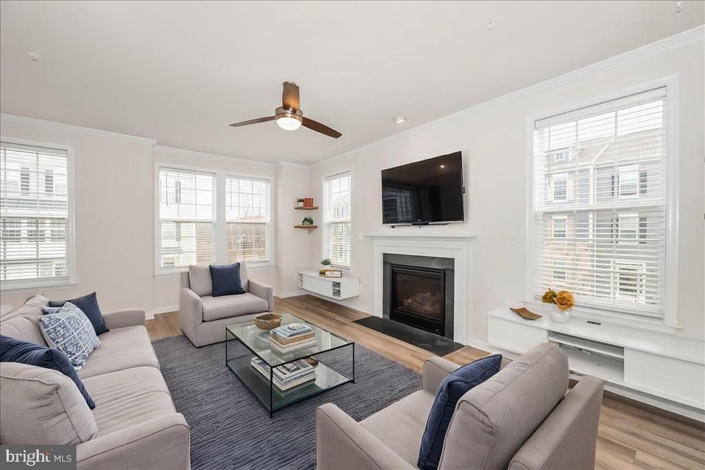 Welcome to this beautifully appointed, end unit townhome offering abundant natural light, 4 bedrooms, 3.5 bathrooms, and a 2 car garage. The entry level features a versatile bedroom /office with an adjacent full bath—ideal for guests, extended family, or a quiet workspace. The main level showcases a chef inspired kitchen with an impressive 9-foot island, Espresso cabinetry, iced white quartz countertops, stainless steel appliances (gas cooking), pantry and French doors opening to an expansive deck. The open layout flows effortlessly into the living room with continued LVT flooring, a gas fireplace, and built-in media consoles create a warm and inviting atmosphere. Retreat upstairs to the serene owner’s suite, complete with a tray ceiling, walk in closet, and a spa like bath featuring dual sinks and an oversized shower with a bench. Two additional bedrooms, a full bath, and a conveniently located laundry room complete the upper level. With thoughtful window treatments and ceiling fans throughout, generous garage with shelving/storage, and two extra parking spaces behind garage (plenty of parking). Ideally situated near Clemson Corner (Wegman's) and Market Square, you’ll enjoy easy access to shopping, dining, and major commuter routes. A perfect blend of elegance, convenience, and modern living awaits.