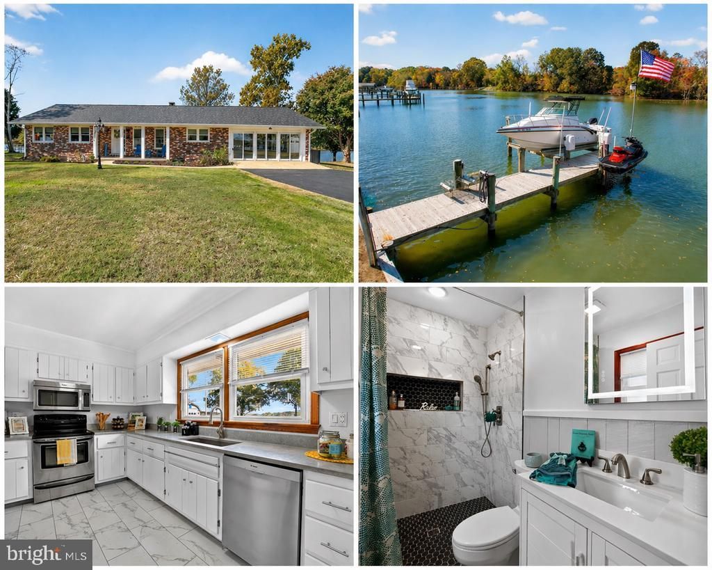 Price Improvement! Now Offered at $815,000 Welcome to this exceptional waterfront all-brick rambler, thoughtfully updated and ready for immediate enjoyment! A true waterfront property on 1.19 acres with an impressive 262 feet of shoreline, this property delivers sweeping, panoramic water views from sunrise to sunset in a serene, tree-lined setting filled with natural beauty and wildlife. It's a rare find to have a home in this great condition on the water at this price. Inside, you’ll find 3 generously sized bedrooms, 2.5 updated baths, and an inviting open-concept layout ideal for both everyday living and entertaining. The living and family rooms are anchored by a striking double-sided brick fireplace with gas logs—perfect for cozy gatherings. A spacious 20’ x 20’ bonus room offers endless possibilities as a recreation space, home office, or media room. The kitchen has been beautifully refreshed with quartz countertops, solid wood cabinetry, and stainless steel appliances. New luxury vinyl plank flooring, plush carpeting, and stylish wood-look laminate run throughout, blending modern updates with timeless appeal. Step outside to a large composite deck overlooking the water—perfect for relaxing or entertaining. The private pier features electric and water, a 12,500 lb boat lift, and a 1,000 lb Jet Ski lift. The huge plus is a private boat ramp for easy access to deep, protected waters. The shoreline is reinforced with a bulkhead and rock revetment, and a newer architectural roof adds long-term value. Additional features include two powered outbuildings with new roofs, a spacious laundry room with utility sink, LED lighting throughout, solid wood interior doors, and a fully decked attic with 2x6 framing for extra storage. No HOA—enjoy the freedom to live how you choose. Watch eagles, ospreys, herons, and more right from your backyard. A large paved driveway offers plenty of space for vehicles, guests, and watercraft. Whether you’re looking for a full-time residence or a weekend waterfront escape, this property offers the perfect blend of comfort, quality, and peaceful living. Don’t miss this incredible opportunity!