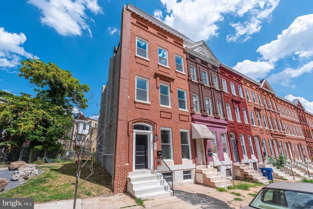 You won't want to miss this opportunity to own a beautiful recently restored end unit rowhome with a new roof and all updated systems in the Upton Gateway Neighborhood . With three thoughtfully designed floors above grade and a full unfinished basement currently set up as a separate level of office space , storage and two queen size bed spaces to allow for extra room for guests. You will enter the home into the light filled oversized living room with an adjacent dining space suitable for a large gathering of friends or family . The Kitchen is appointed with all new top of the line Frigidaire SS appliances an Island with Quartz Countertops and luxury cabinetry complete with 42 inch cabinets and ample space for everything you might need in the kitchen . A half bath compliments the first floor living area. Ascending to the second level you will find two good sized bedrooms with three windows each to allow ample light , one with an en-suite bath and walk-in closet and the other with a large closet space and hallway bath . There is also a dedicated Laundry Room and plenty of space in the hall . On to the top level of the home where you will find the primary suite with its own bath and walk-in closet along with a wall of windows for a light filled space . Adjacent to the primary you will find a sitting room area with access to the fantastic roof top deck area which completes the owners oasis on the top floor. The home has been fitted throughout with custom blinds on every window to ensure privacy when desired . Also outside the home you will have access to a small driveway area and both the public park next door and the dog park across the street . Walk to the Stadiums and the Historic Mount Vernon neighborhood . With everything this home has to offer and quick access to the city and major thoroughfares you will want to make this your first stop !